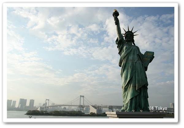 往海濱公園移動,這自由女神是法國送給日本的
